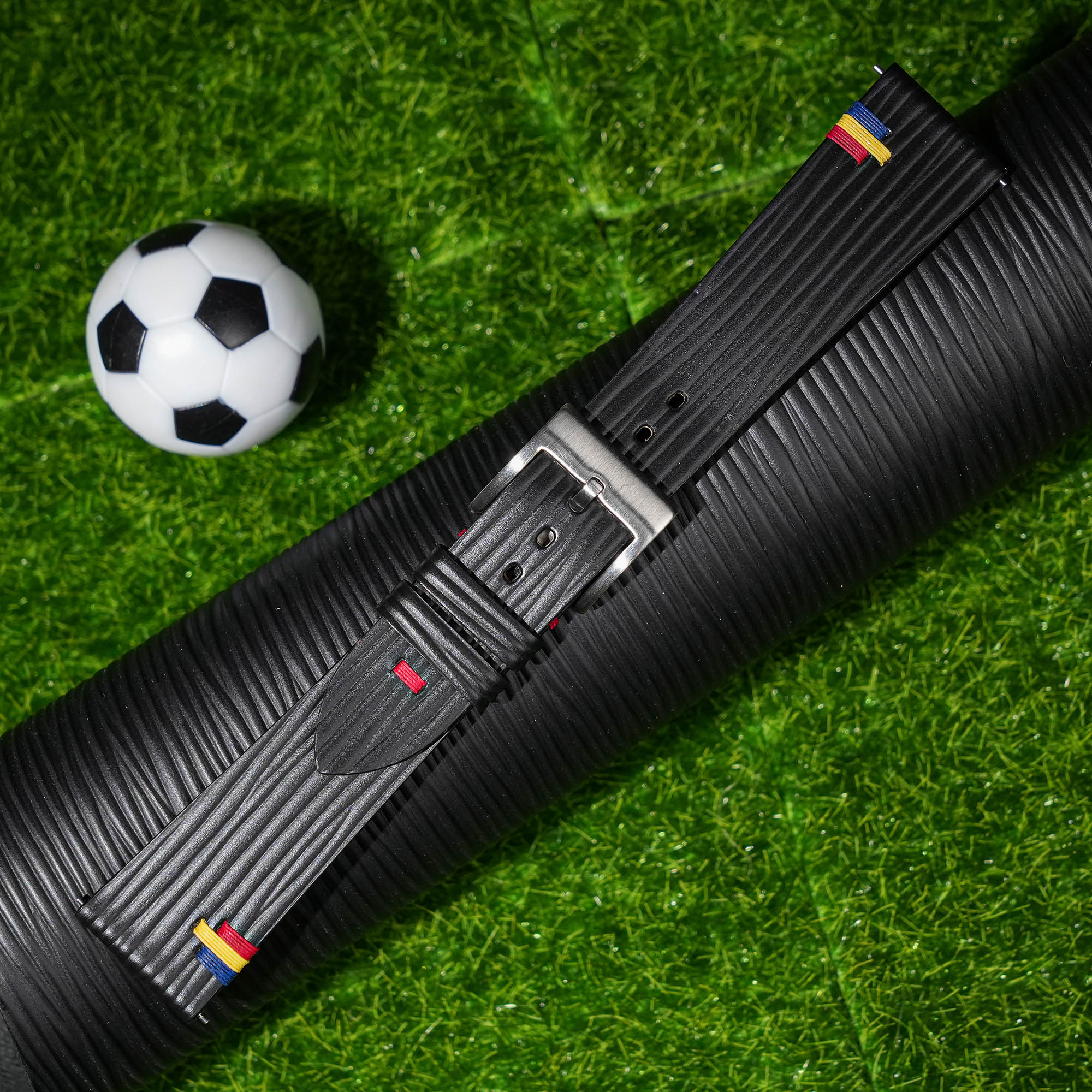 Black Calfskin Leather Romania Flag Watch Strap 100% handmade custom straps by Vietnamese craftsmen