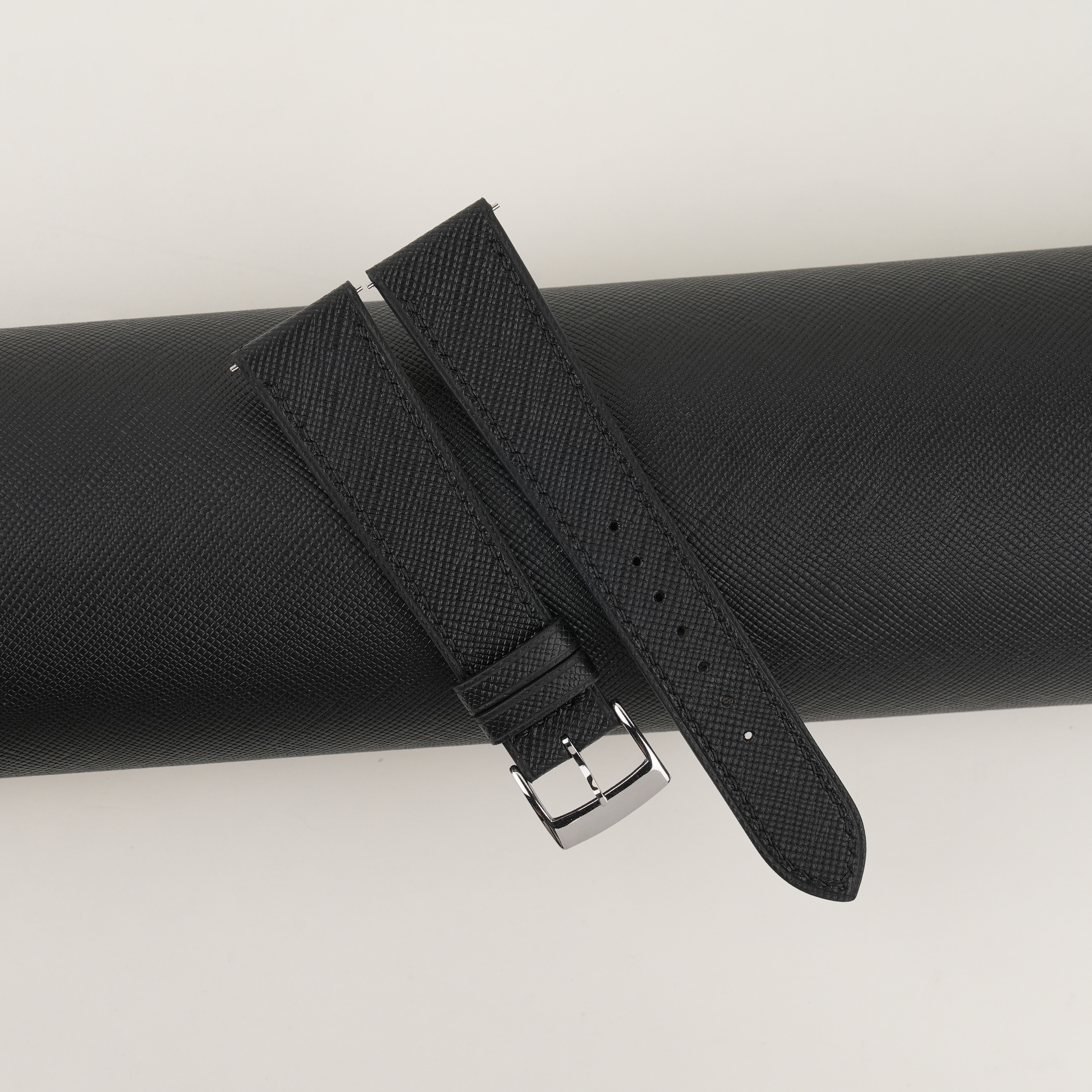 Black Saffiano Leather Watch Strap 100% handmade custom straps by Vietnamese craftsmen