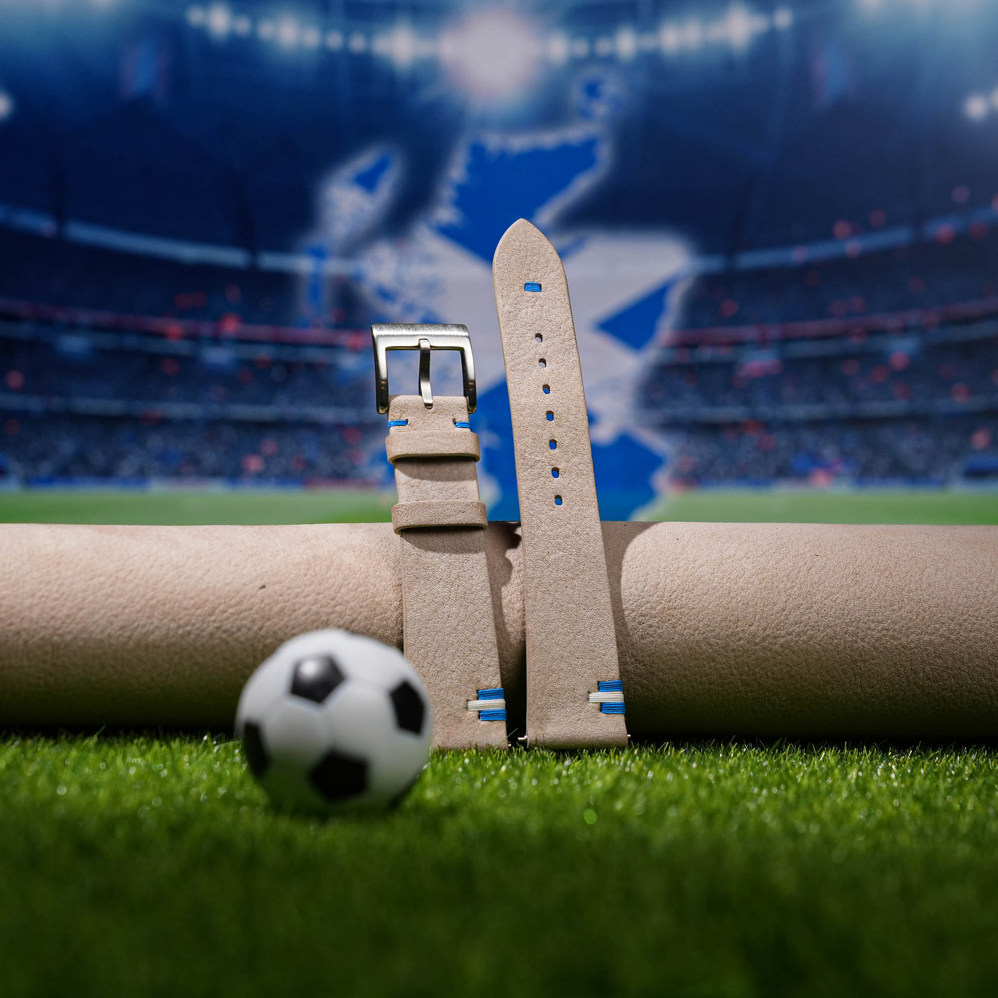Cream Nubuck Leather Scotland Flag Watch Strap 100% handmade custom straps by Vietnamese craftsmen