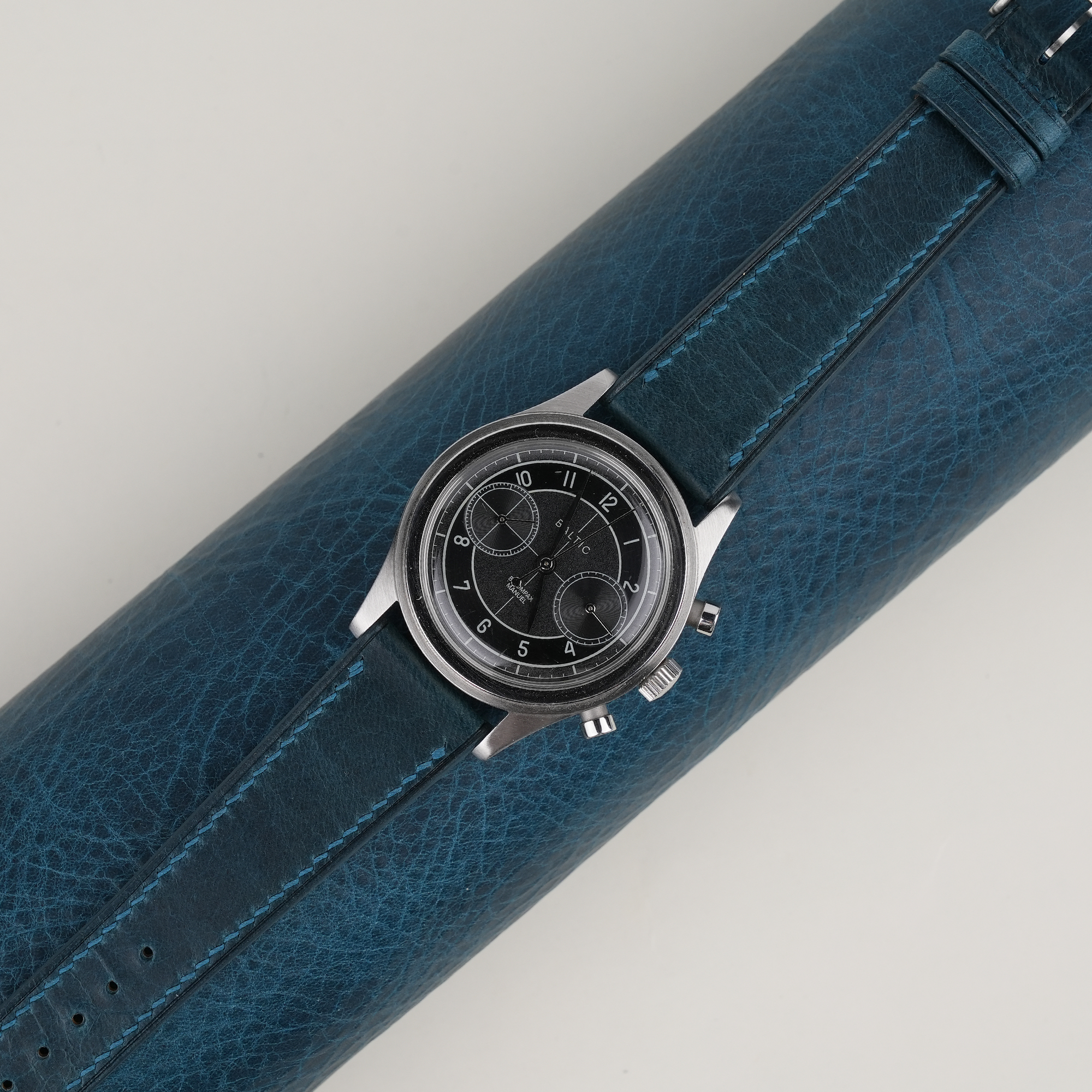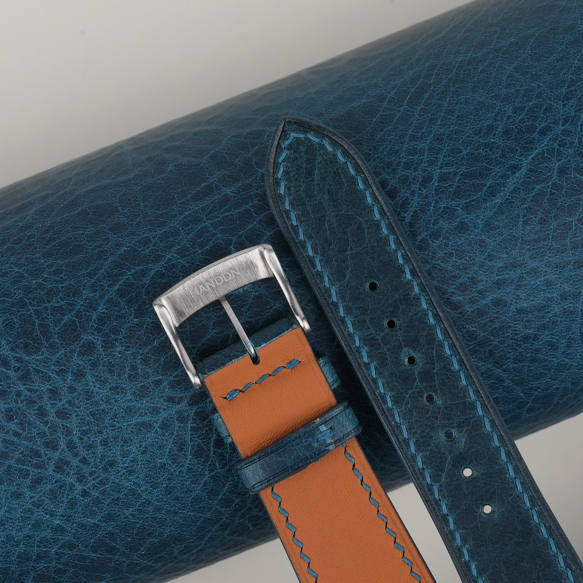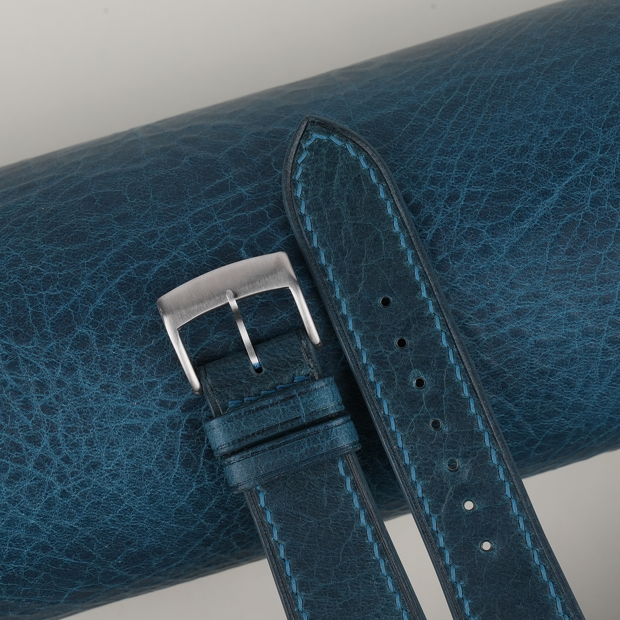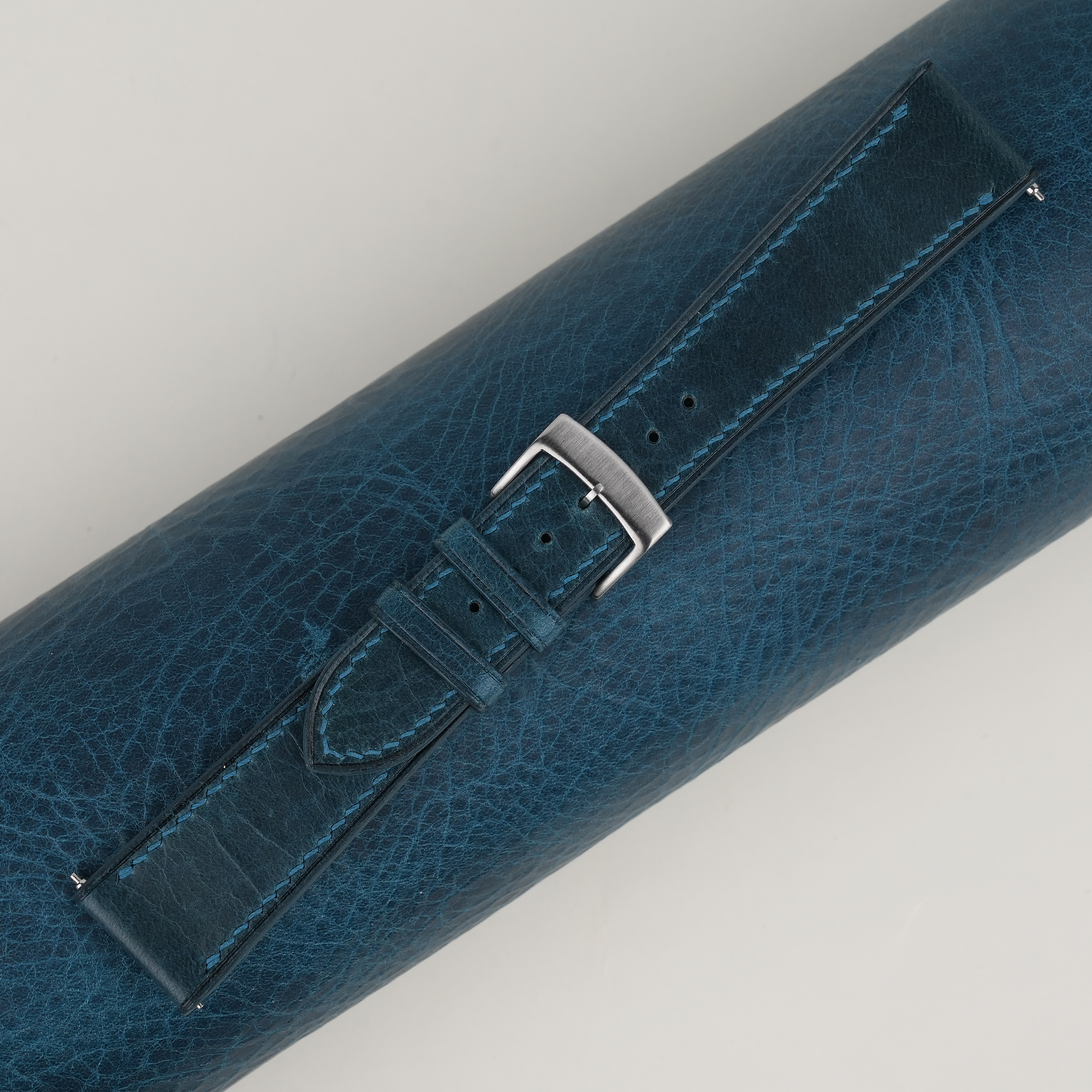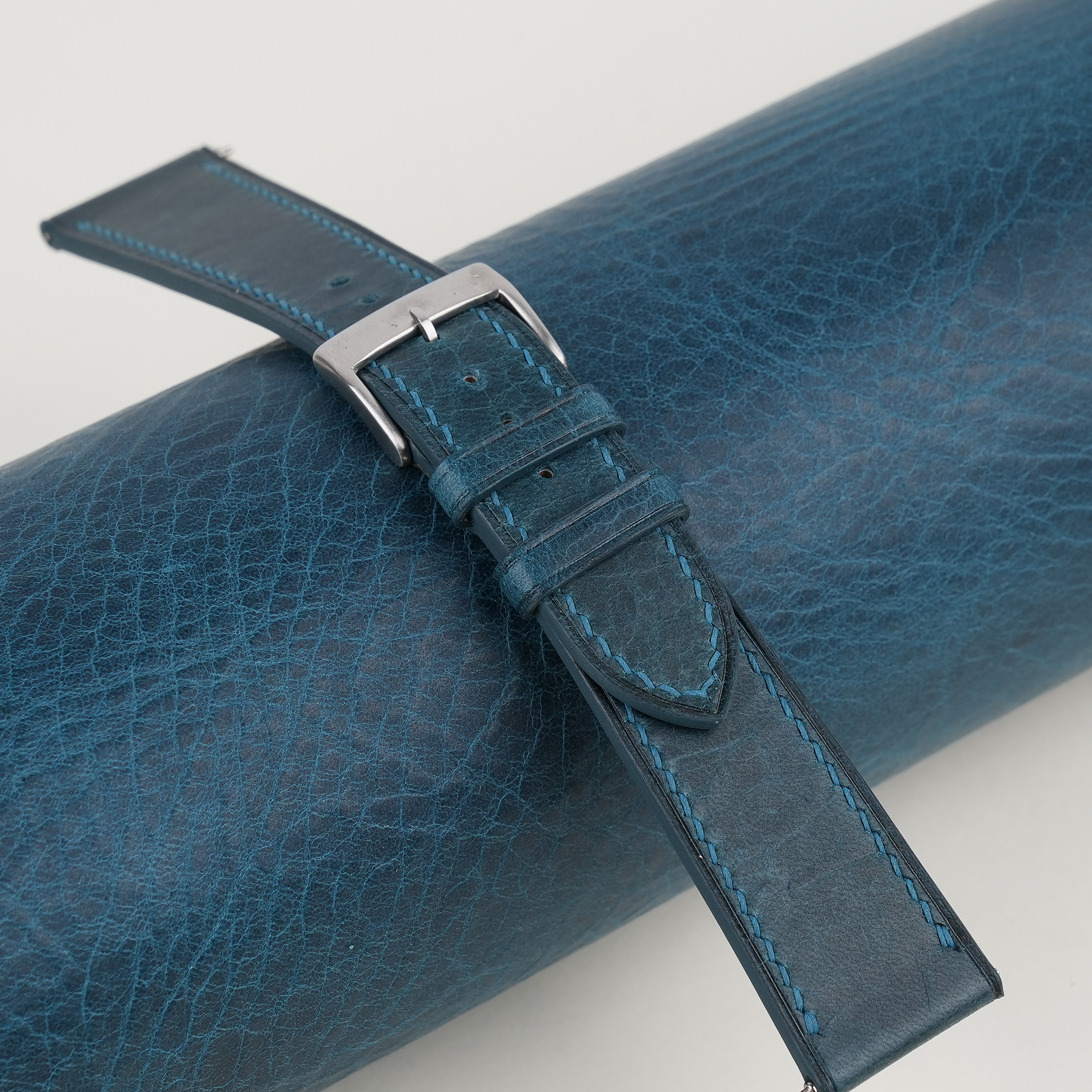 Dark Aqua Blue Waxed Badalassi Carlo Leather Watch Strap 100% handmade custom straps by Vietnamese craftsmen