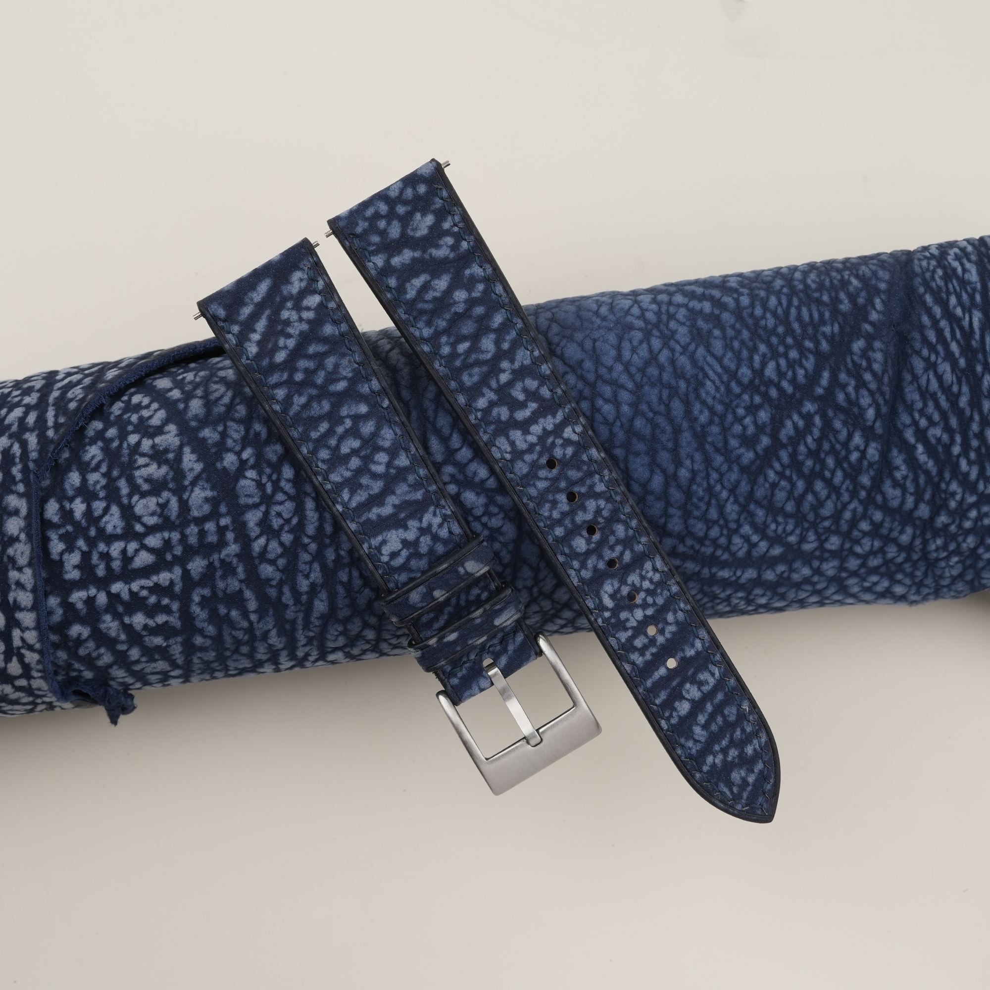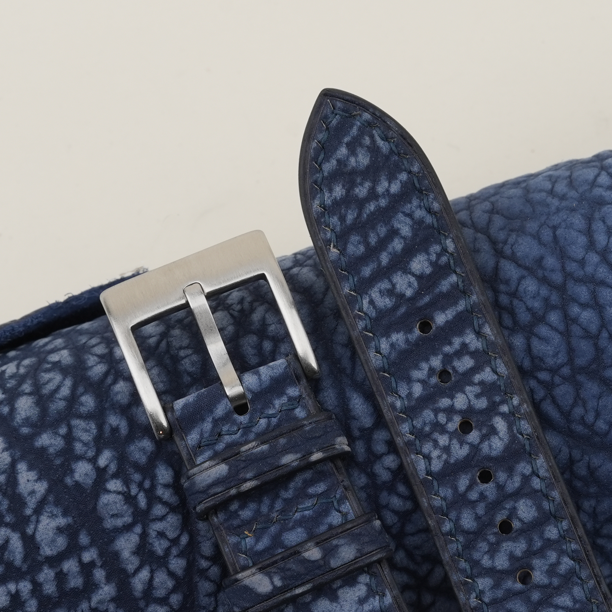 Dark Blue Shark Leather Watch Strap 100% handmade custom straps by Vietnamese craftsmen.