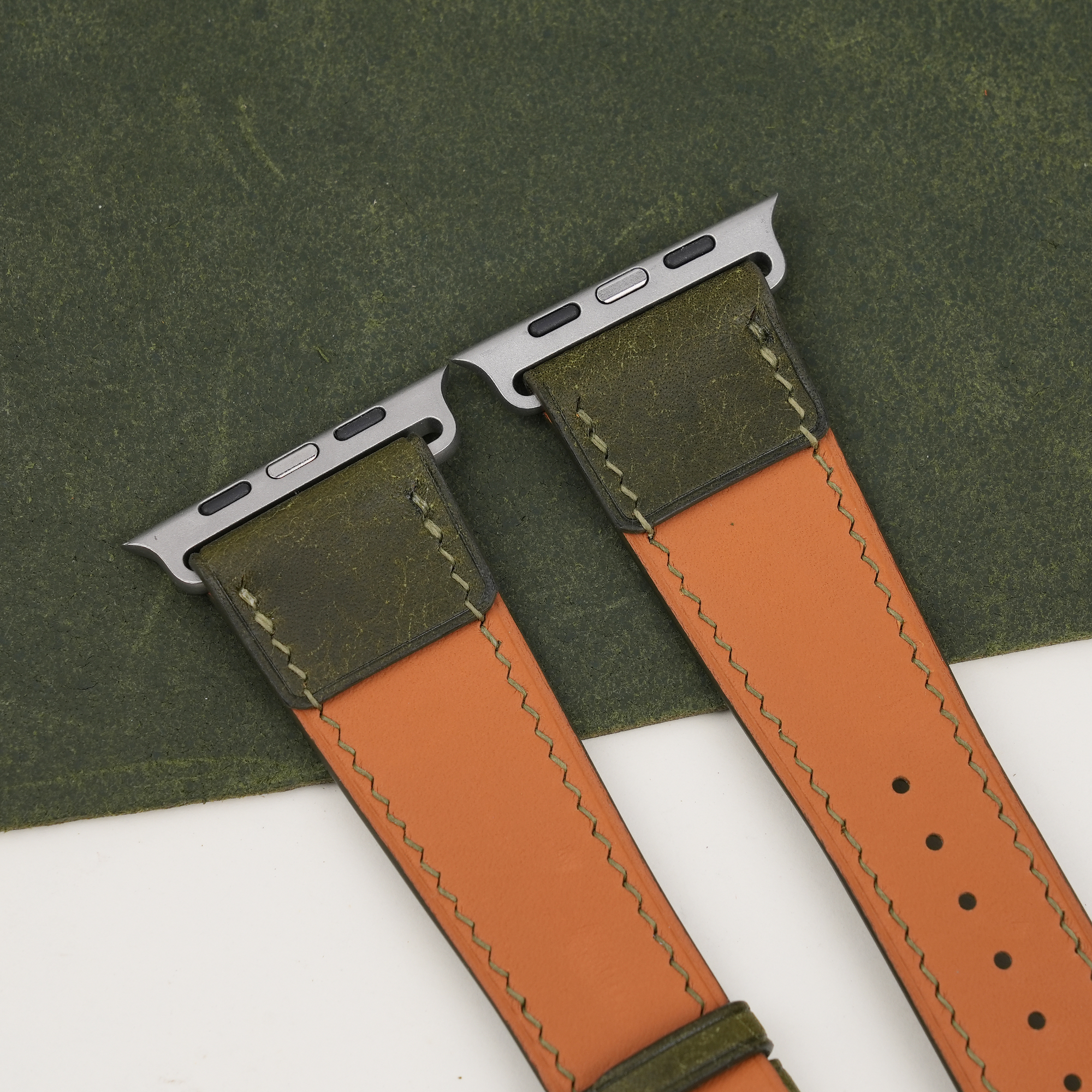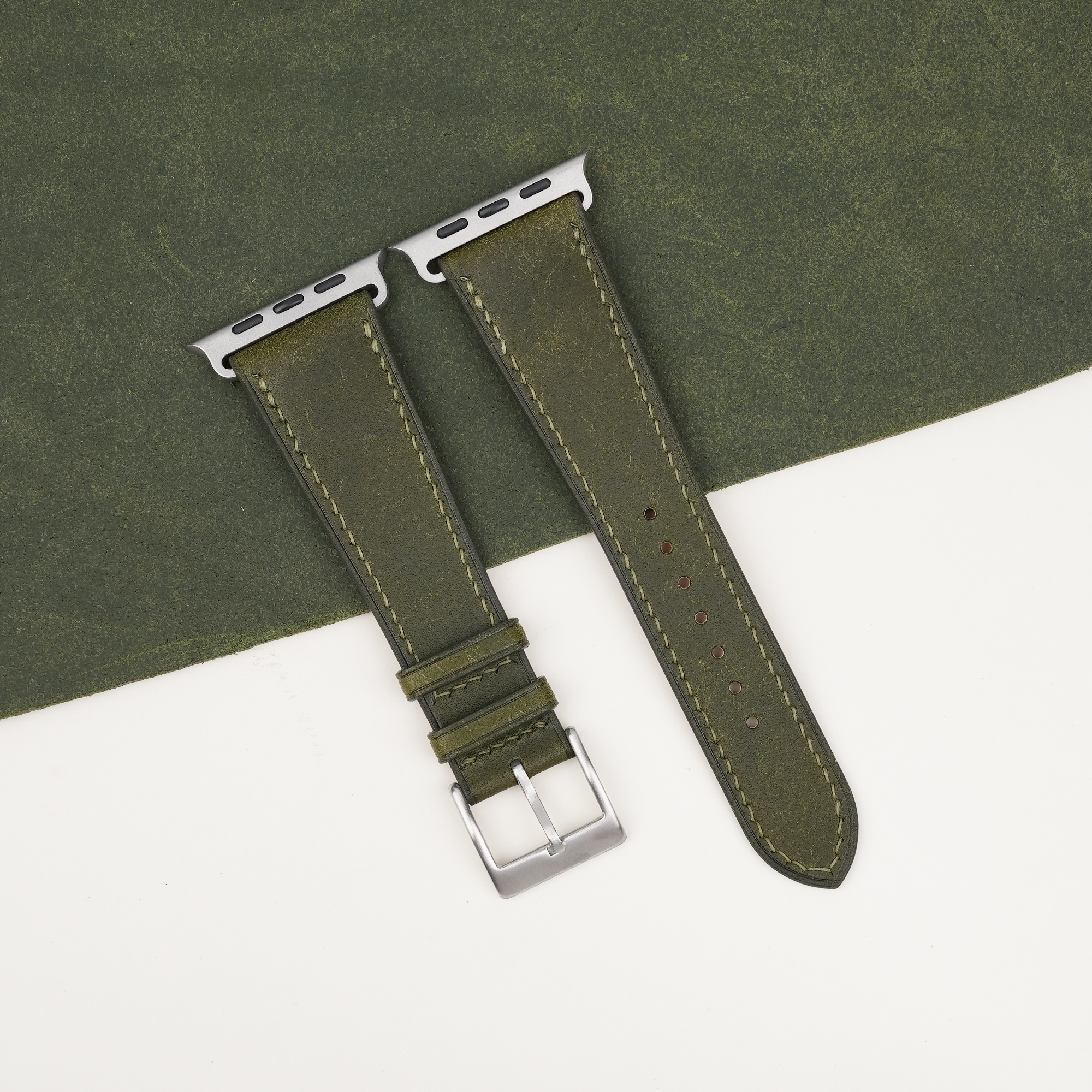Dark Olive Badalassi Carlo Pueblo Leather Apple Watch Ultra Band100% handmade custom straps by Vietnamese craftsmen Handdn Watch Bands are compatible with Apple Watch Ultra.