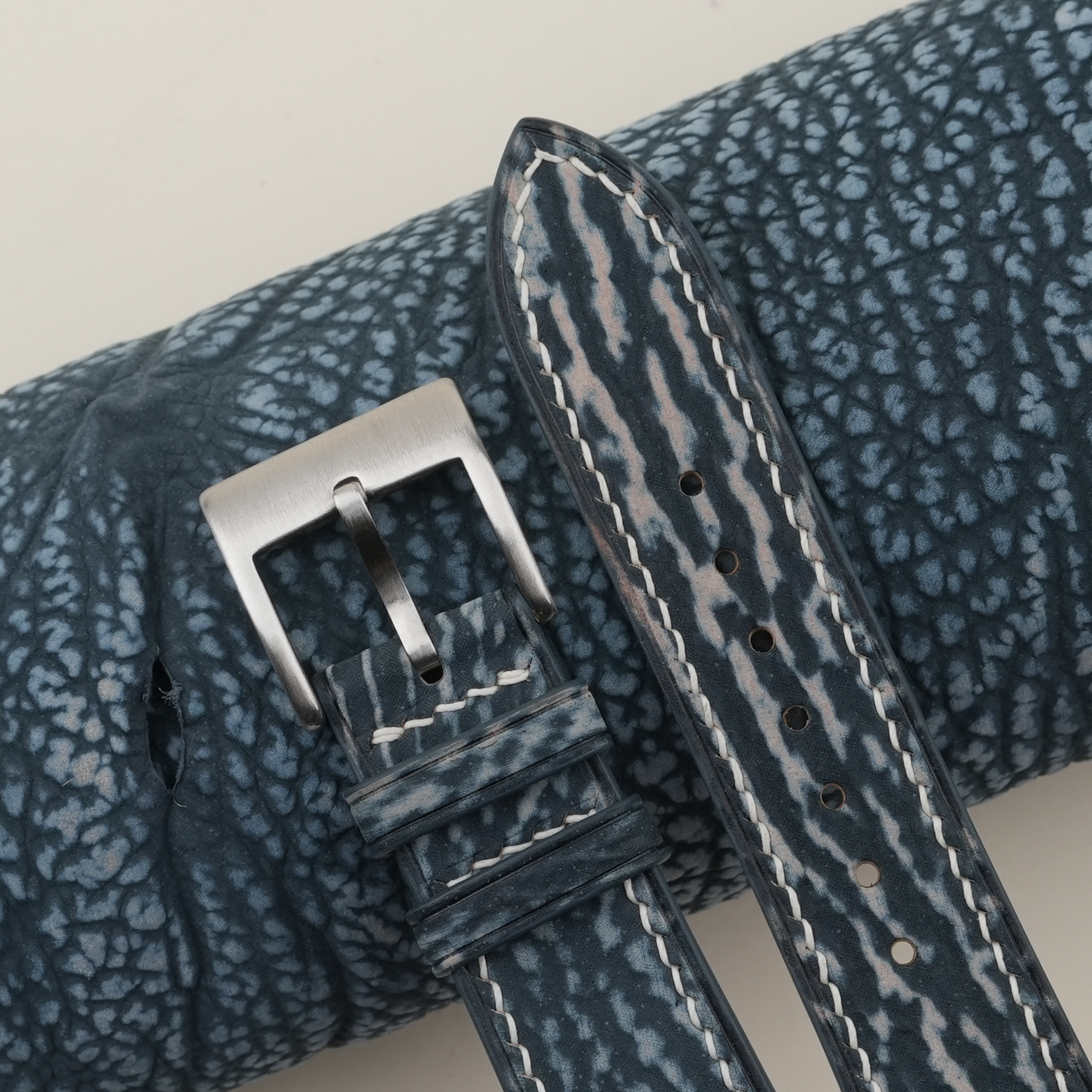 Jean Blue Shark Leather Watch Strap 100% handmade custom straps by Vietnamese craftsmen.