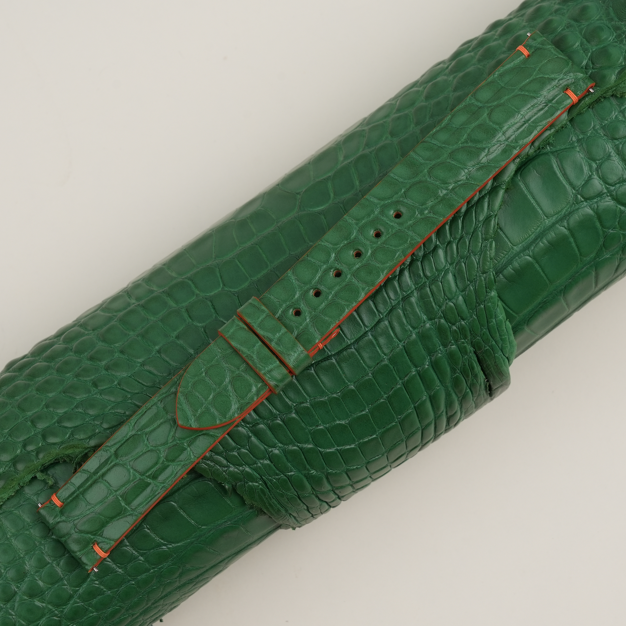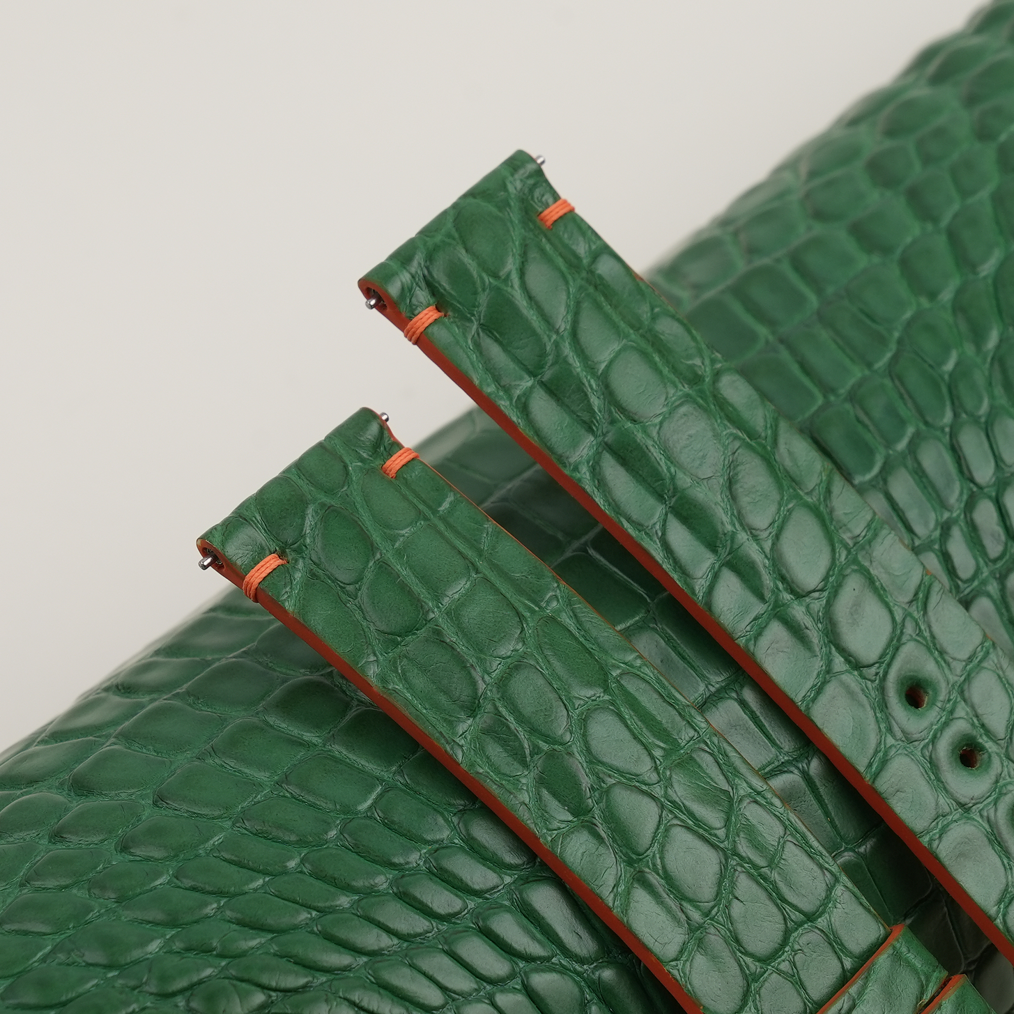 Light Green Alligator Lining Orange Epsom Leather Watch Strap 100% handmade custom straps by Vietnamese craftsmen