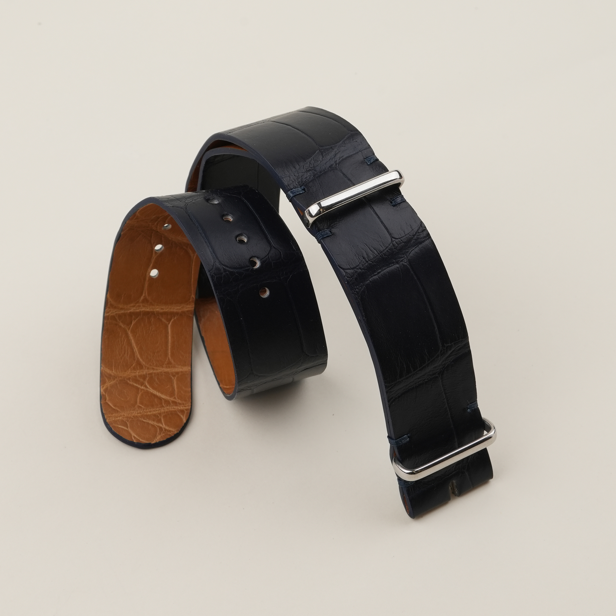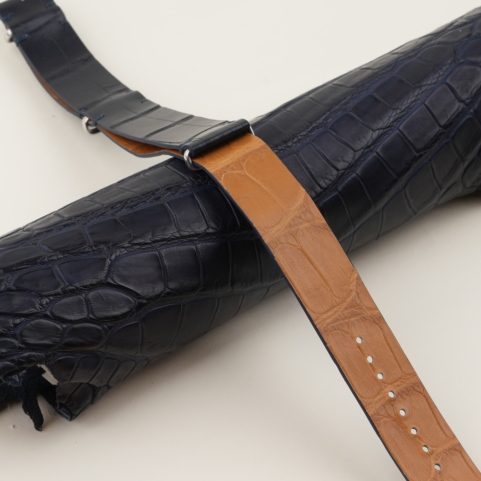 NATO Midnight Blue Alligator Lining Light Brown Alligator Leather Watch Strap 100% handmade custom straps by Vietnamese craftsmen