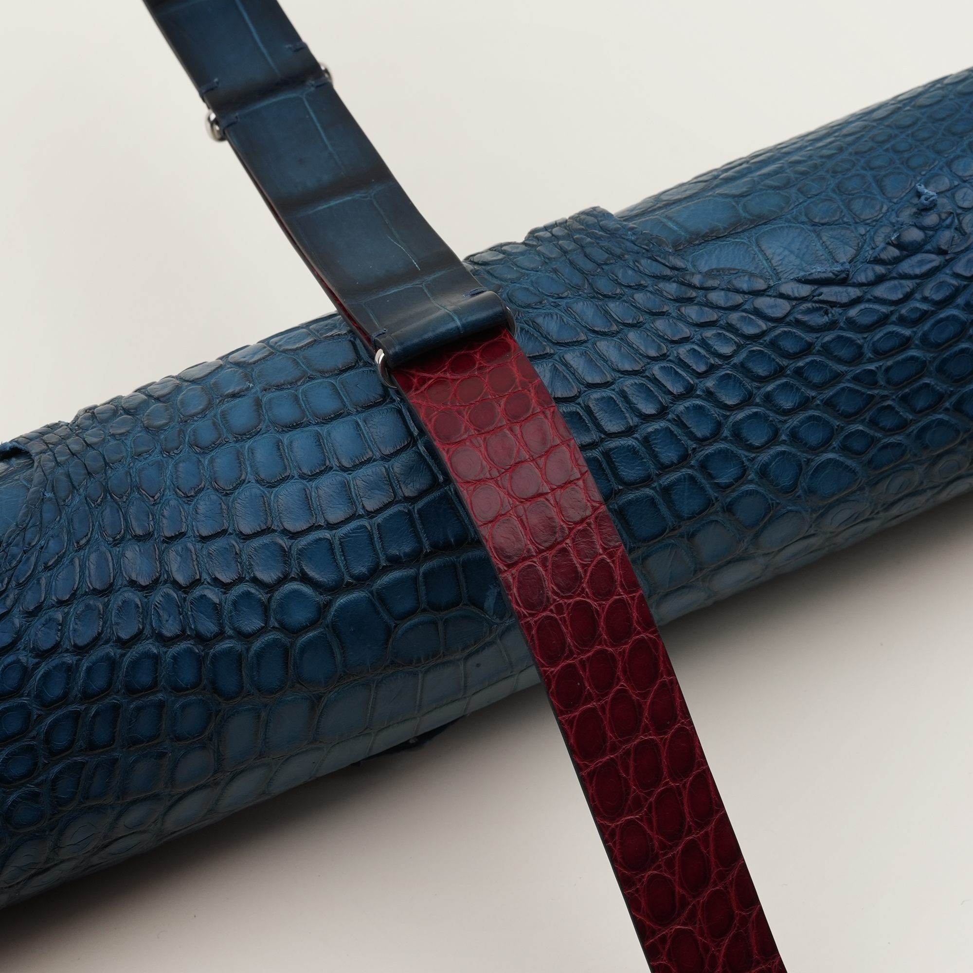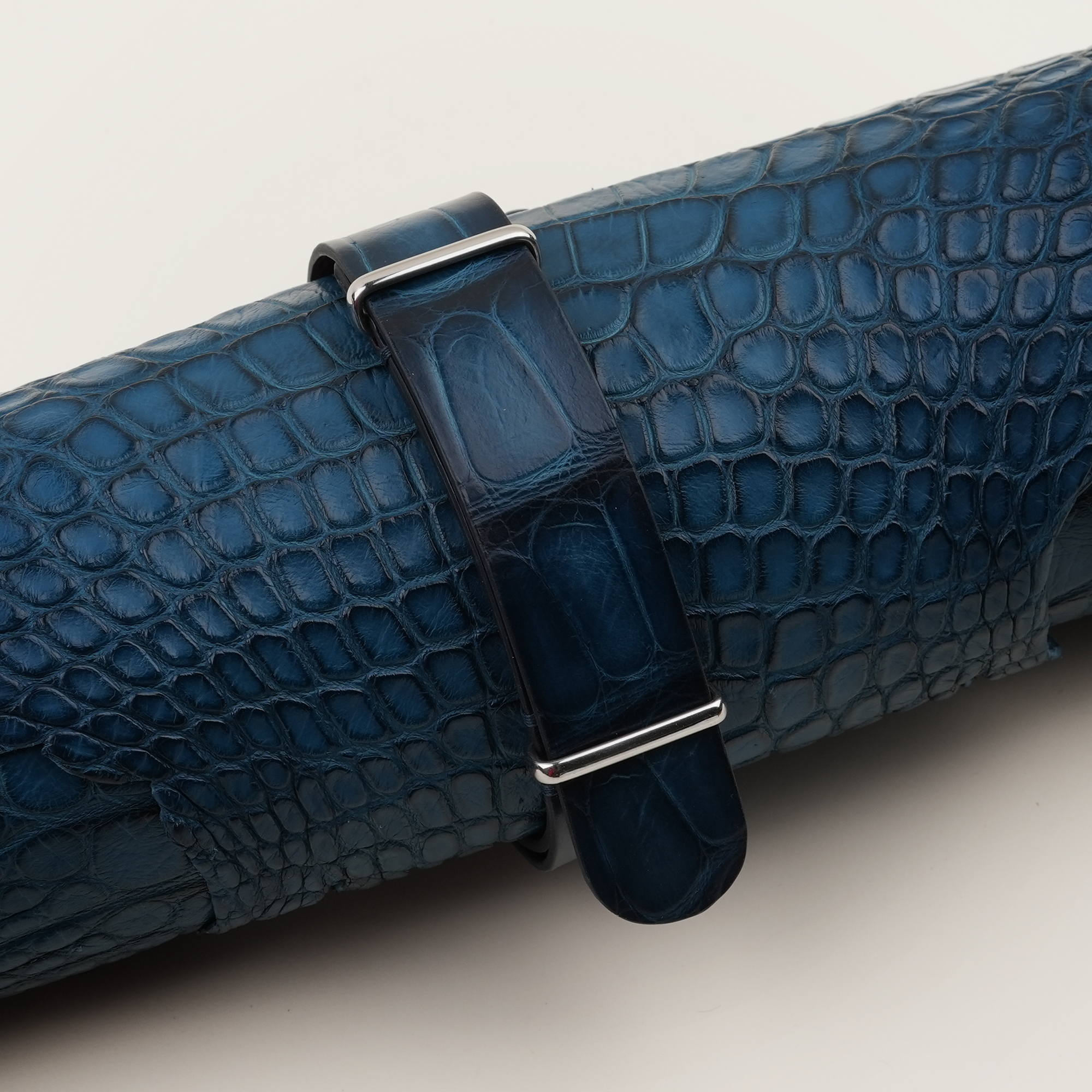 NATO Patina Blue Alligator Lining Bordeaux Alligator Round Scales Leather Watch Strap 100% handmade custom straps by Vietnamese craftsmen