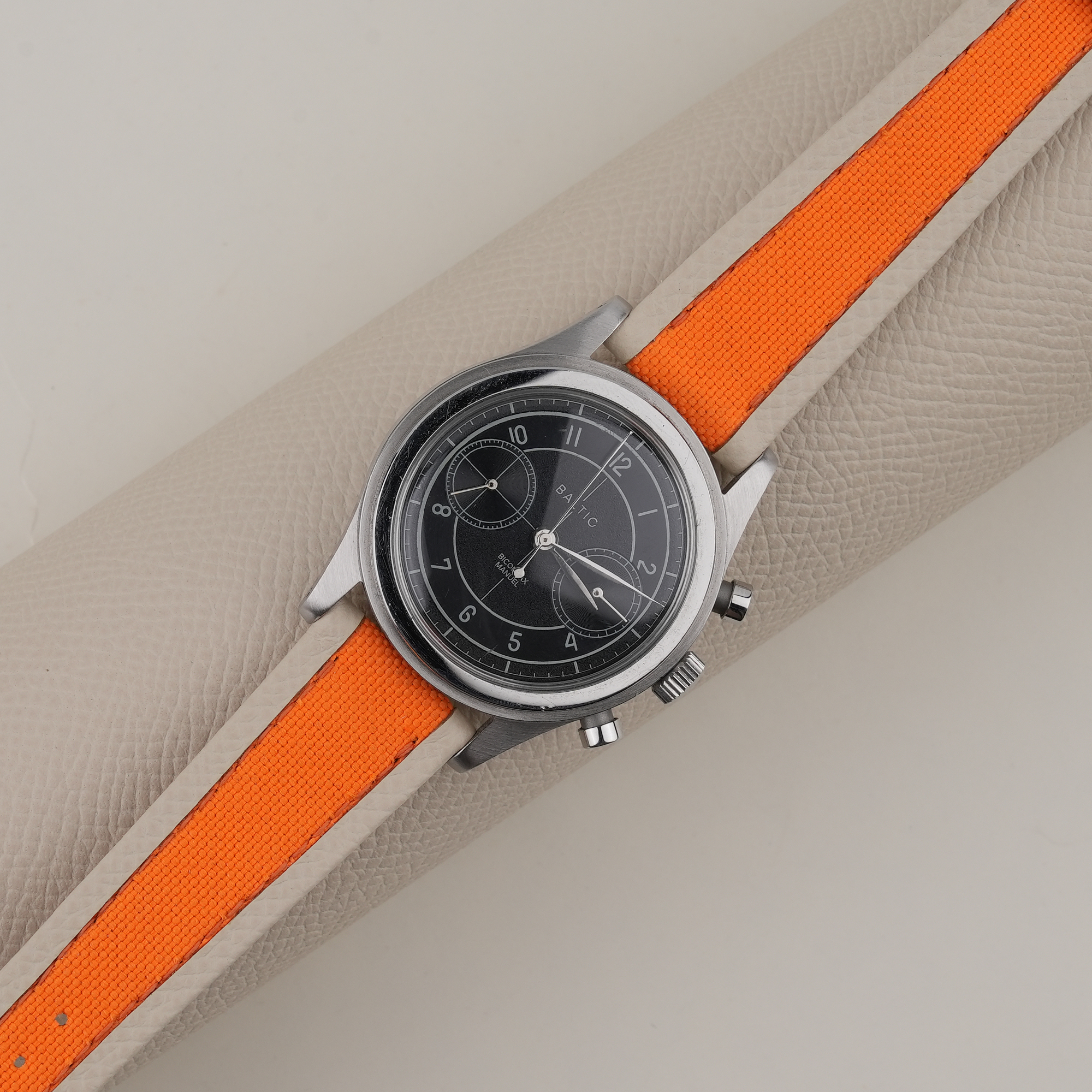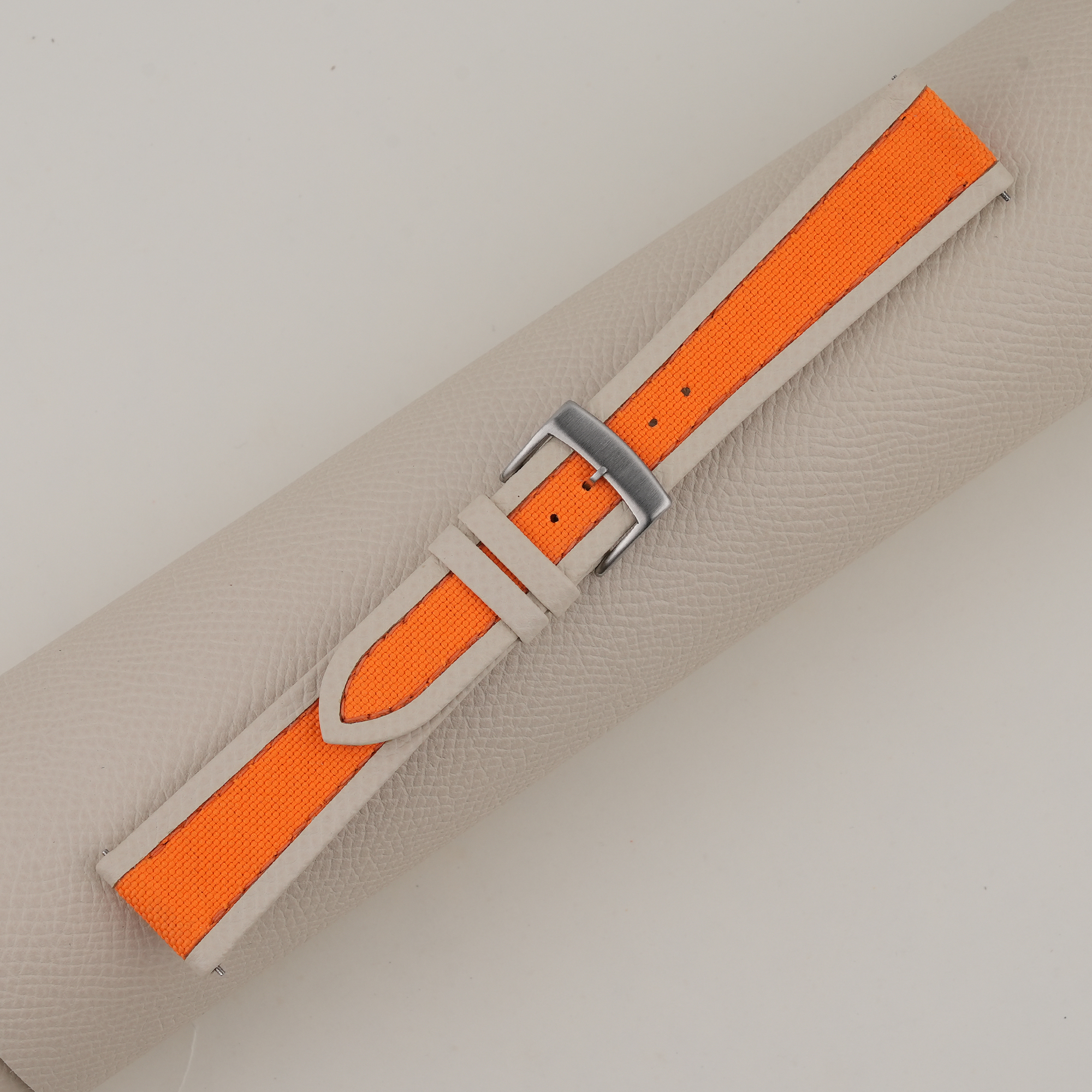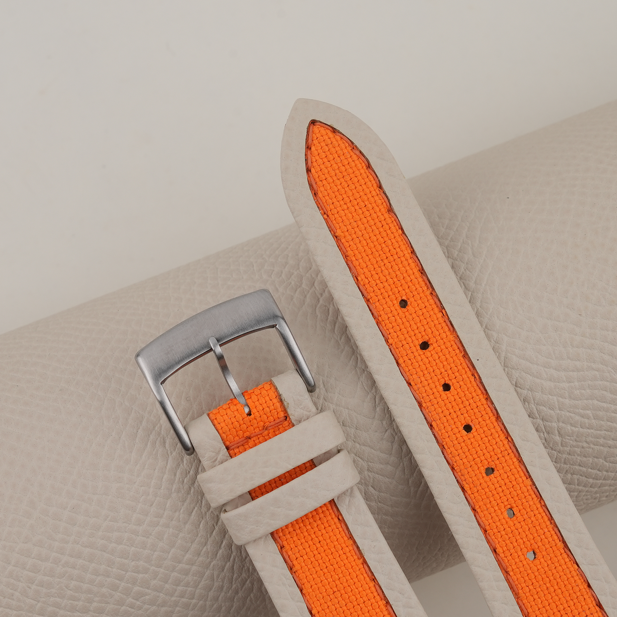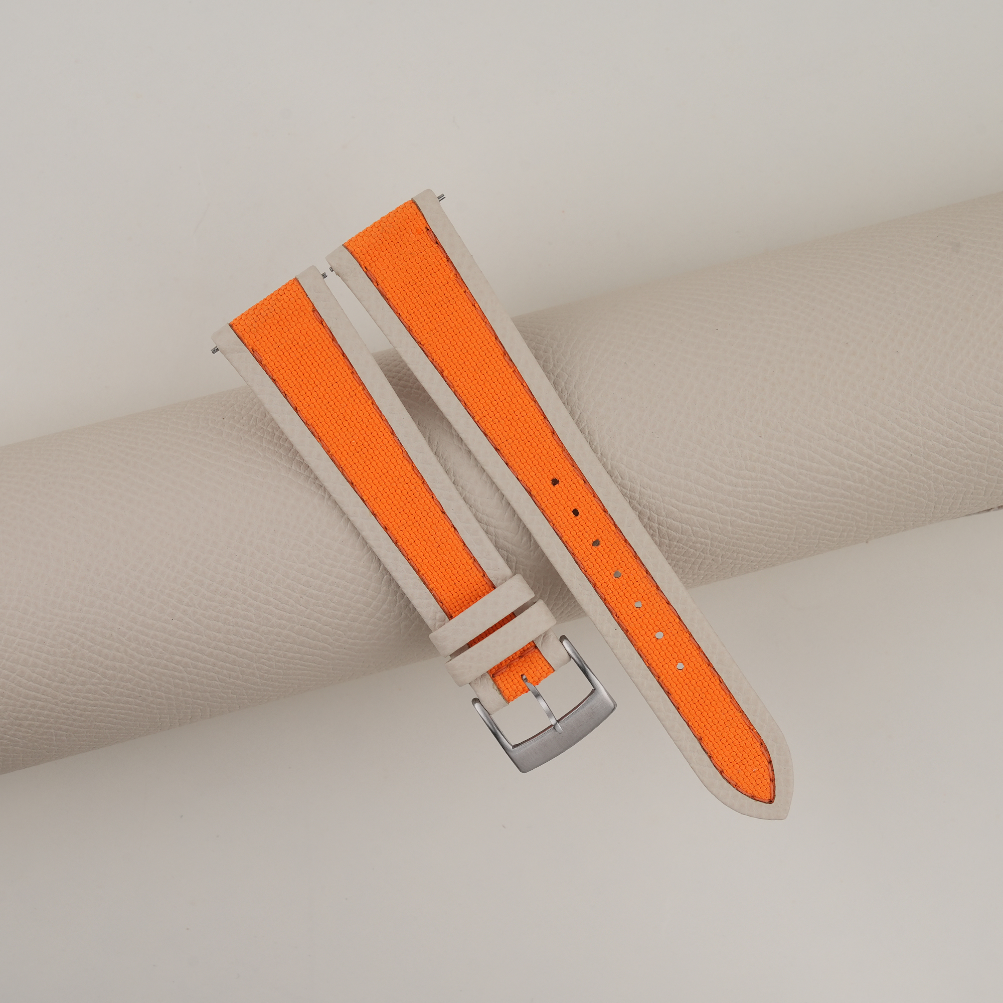 Orange Canvas Folded Edge Pearl White Epsom Watch Strap 100% handmade custom straps by Vietnamese craftsmen