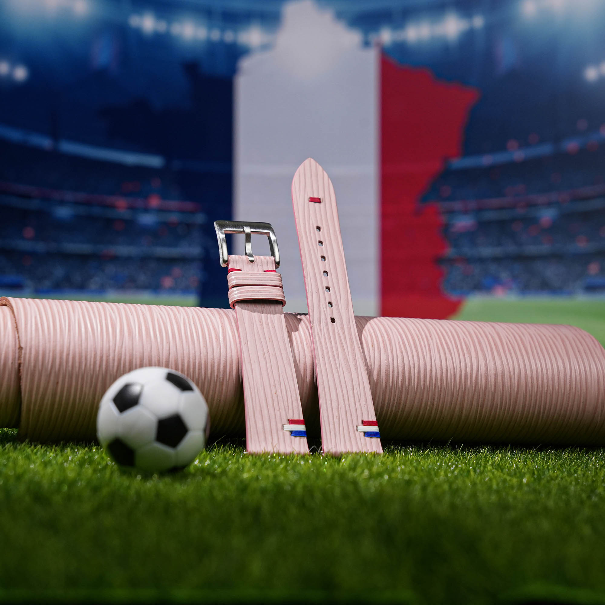 Pink Calfskin Leather France Flag Watch Strap 100% handmade custom straps by Vietnamese craftsmen