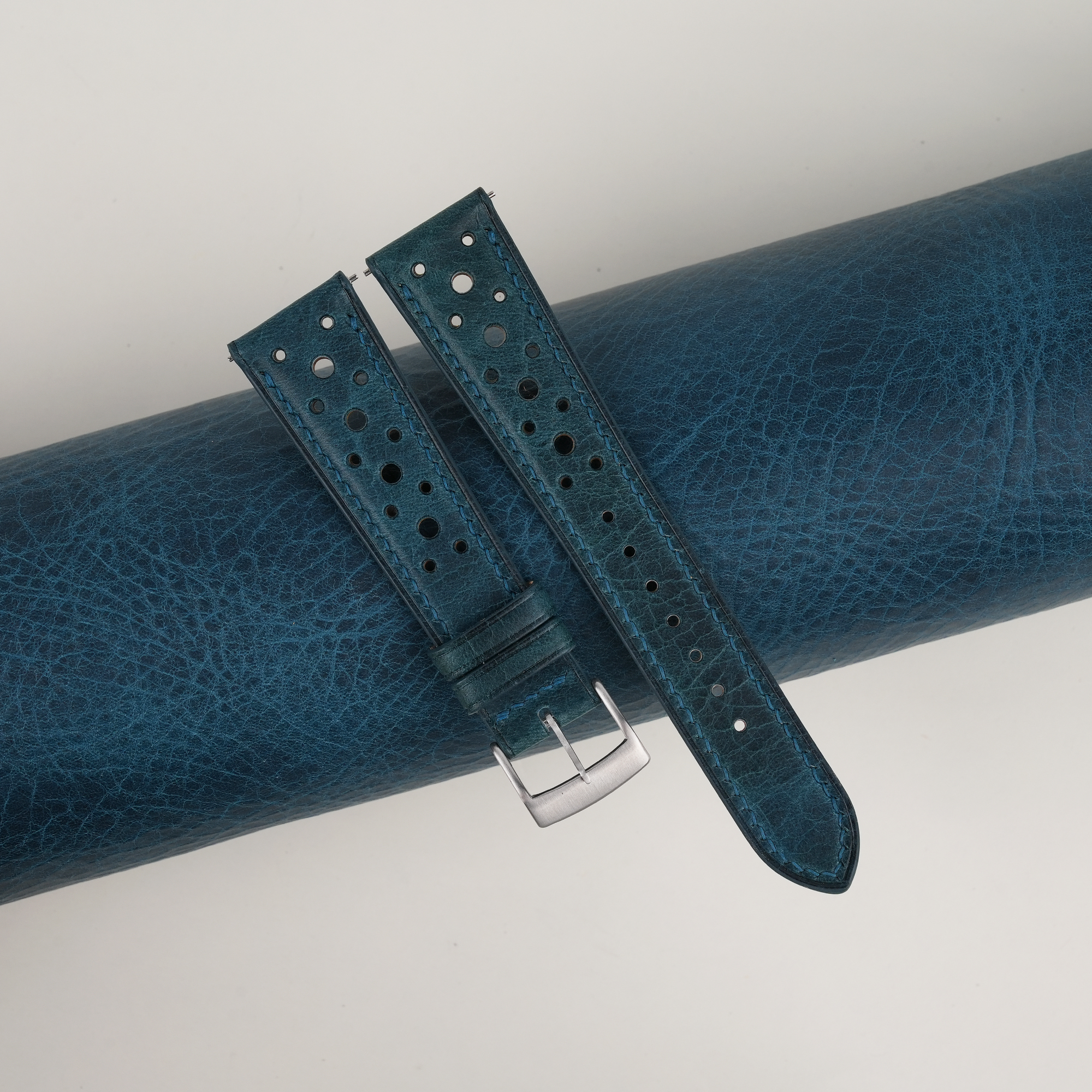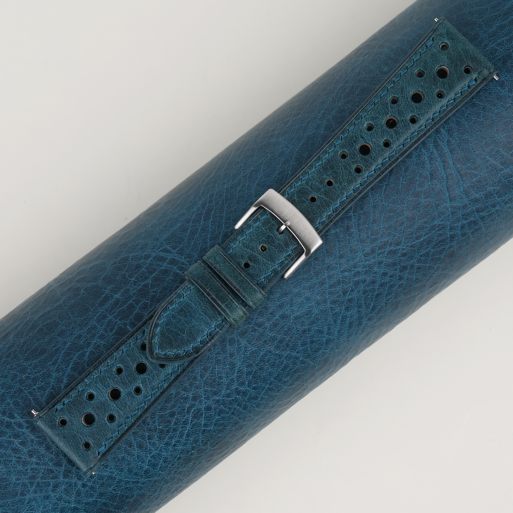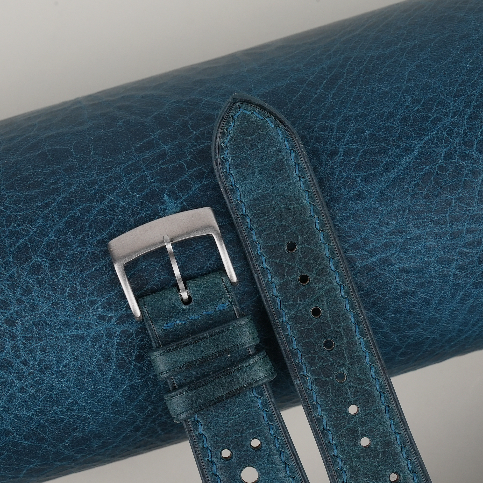 Rally Dark Aqua Blue Waxed Badalassi Carlo Leather Watch Strap100% handmade custom straps by Vietnamese craftsmen