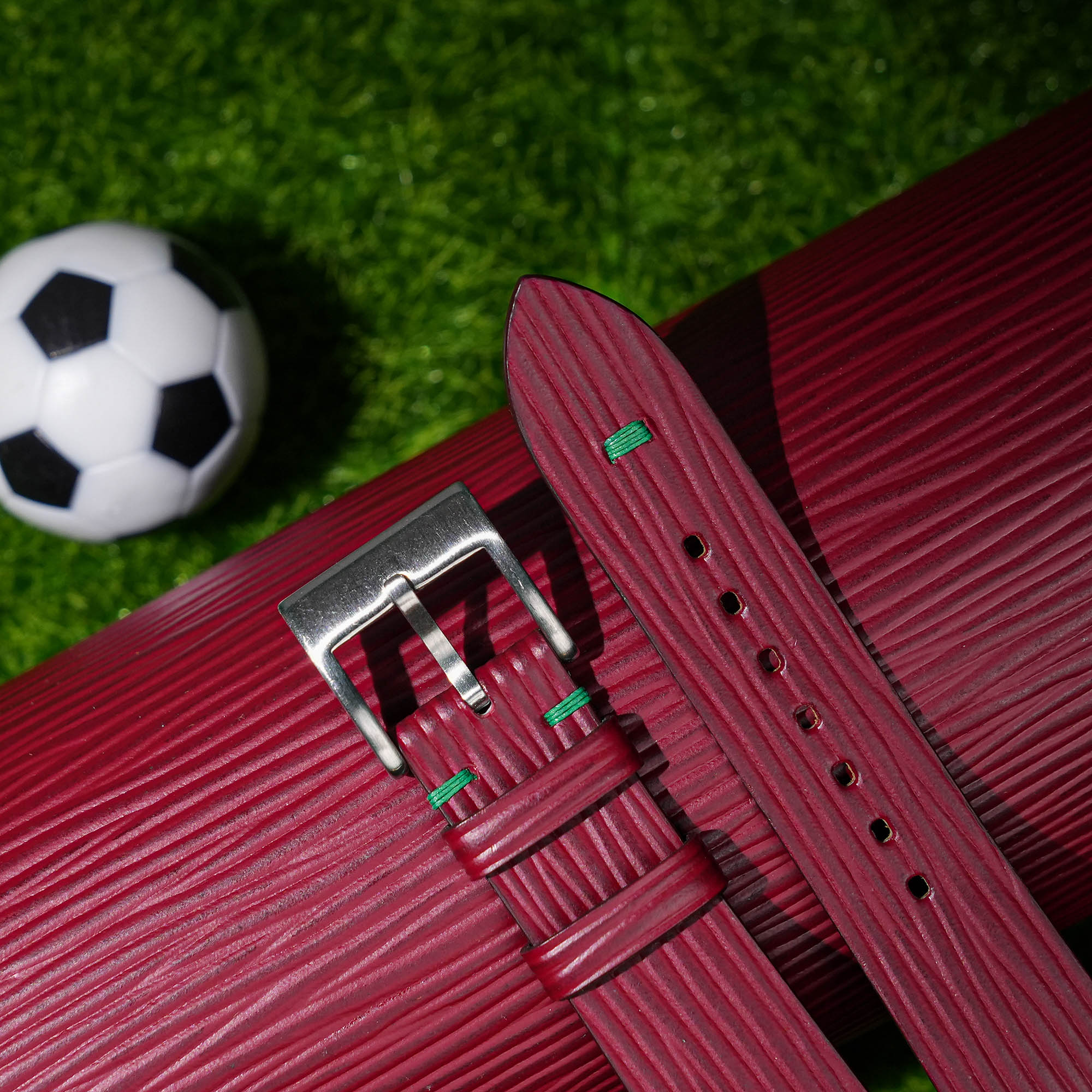 Red Calfskin Leather Portugal Flag Watch Strap 100% handmade custom straps by Vietnamese craftsmen