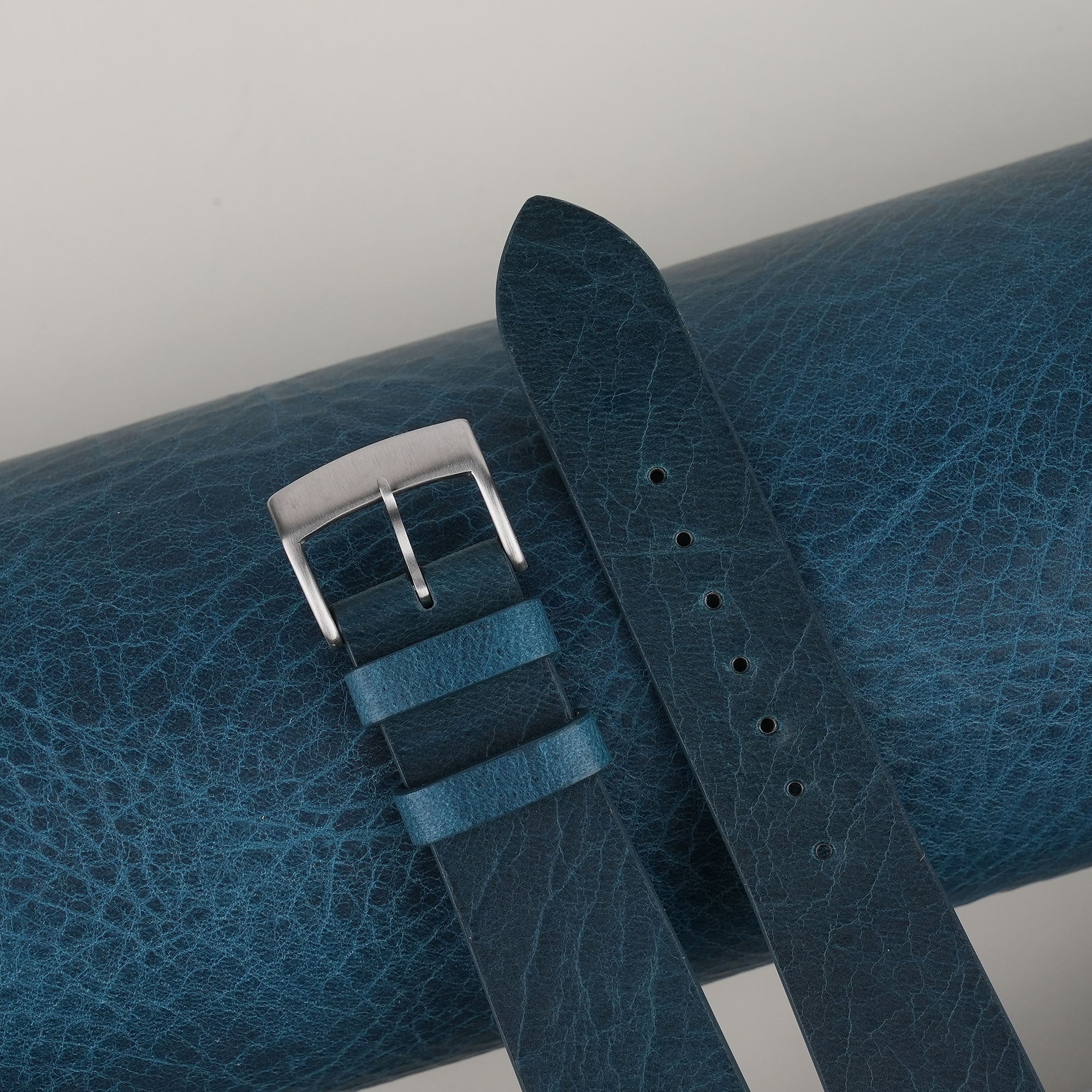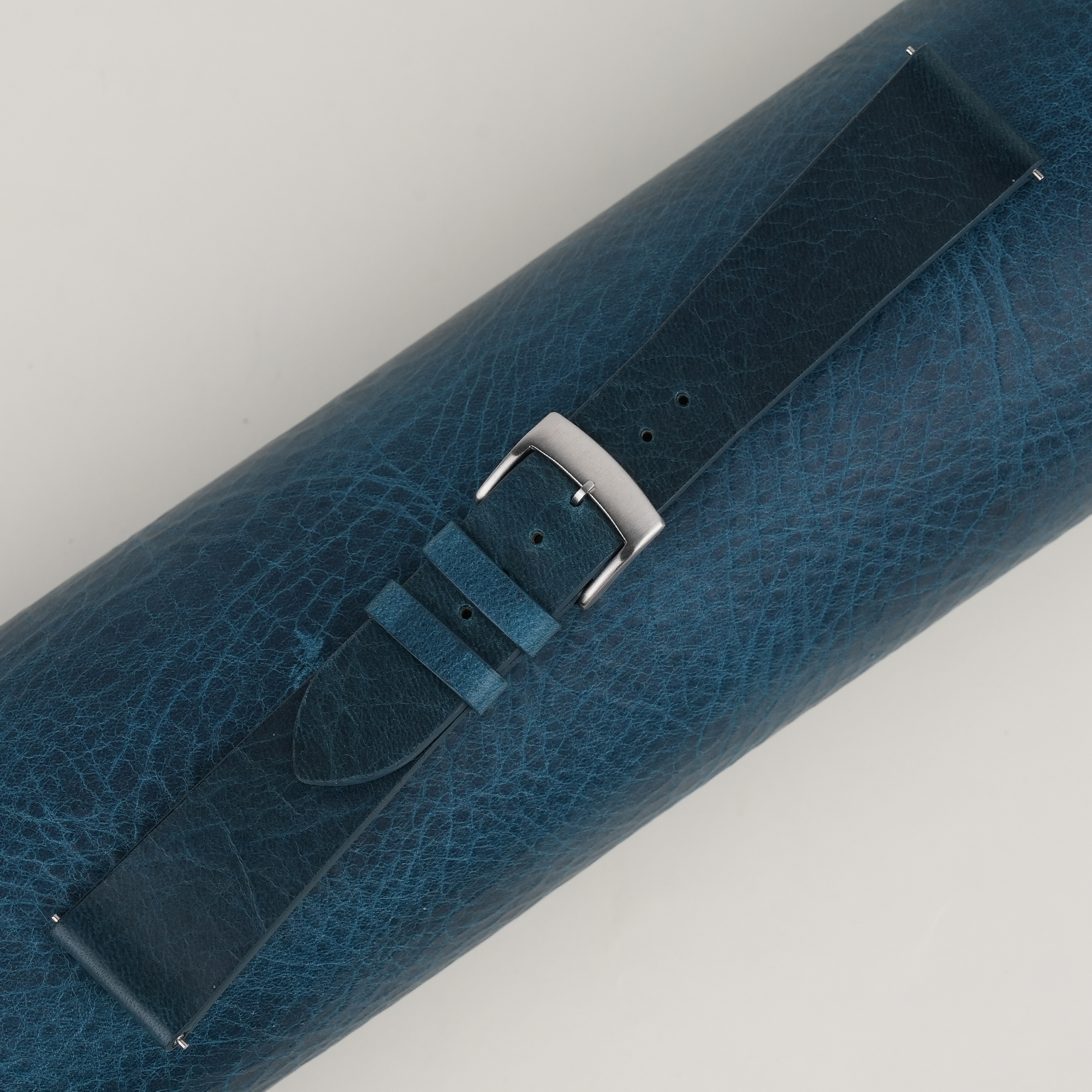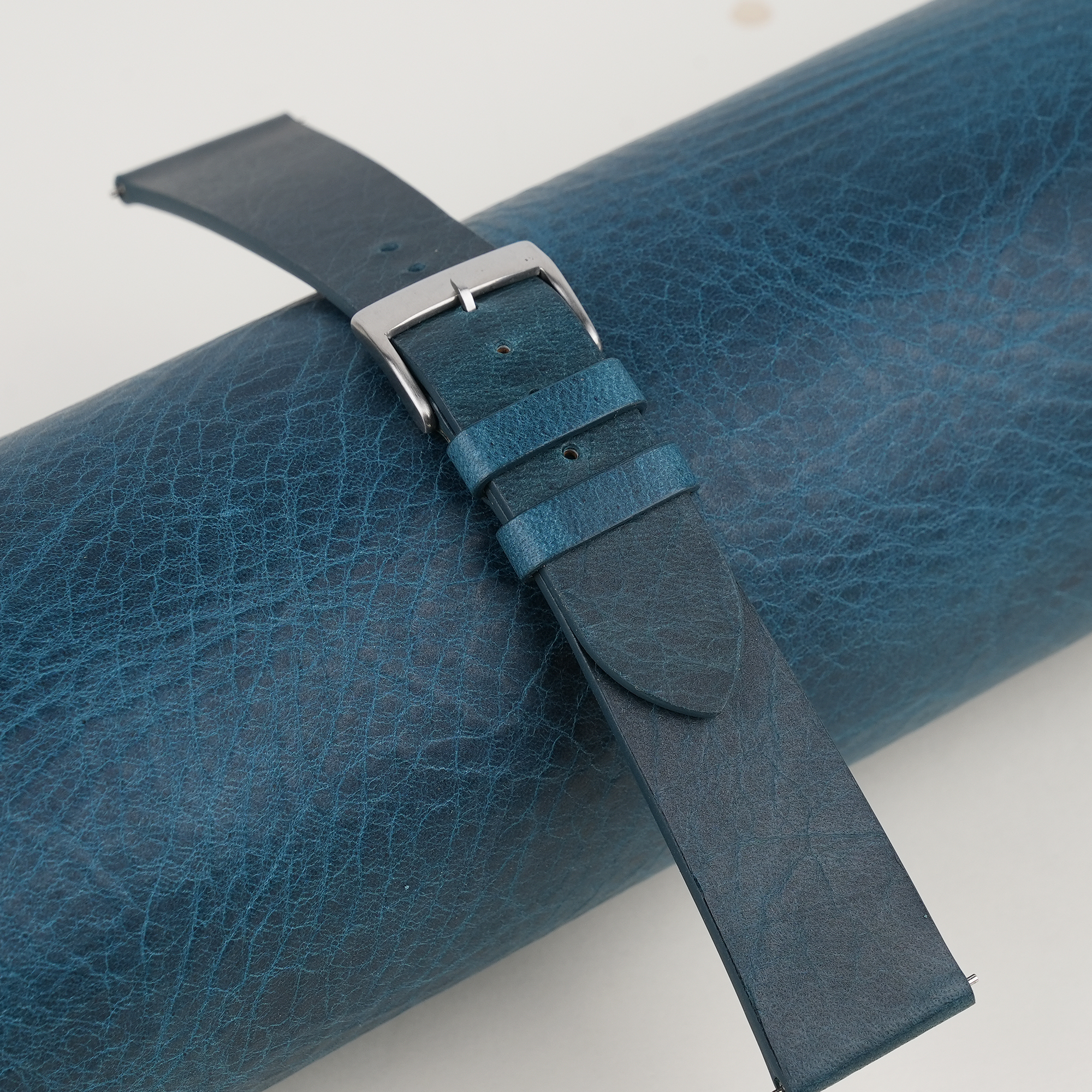 Vintage Dark Aqua Blue Waxed Badalassi Carlo Leather Watch Strap 100% handmade custom straps by Vietnamese craftsmen