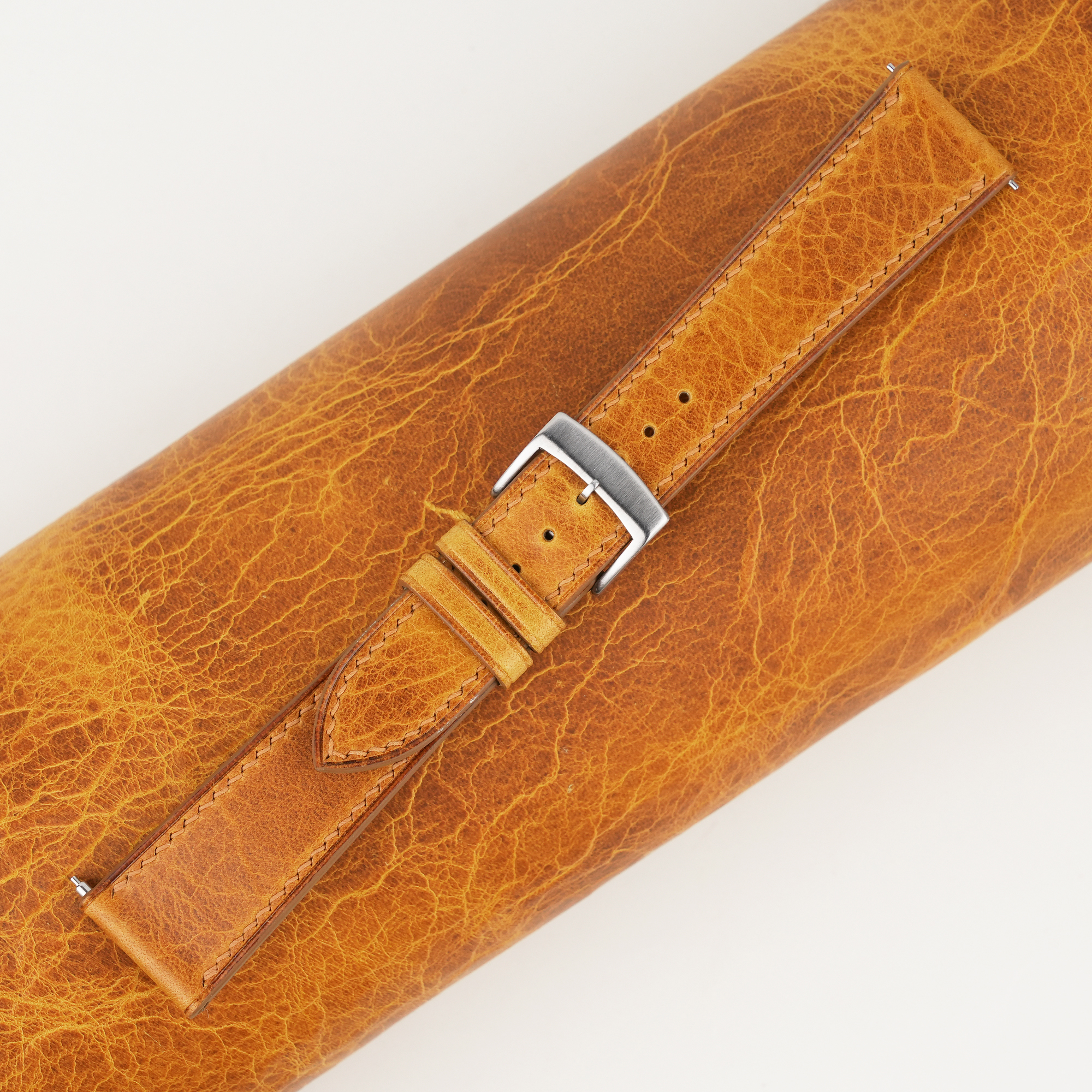 Crafted from the finest leather sourced from the renowned Badalassi Carlo Tannery in Italy, our Waxed Leather Watch Strap embodies the pinnacle of traditional leather-making techniques. Using time-honored vegetable tanning methods, the artisans at Badalassi Carlo transform the highest-quality hides into a leather of unparalleled character and resilience. The waxed finish enhances the strap's water-resistance and scratch-resistance, while imbuing it with a rich, lustrous sheen that only deepens with age.